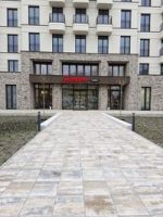 Für das Wohnviertel sind die Tiefgaragen komplett mit einen grauen Rechteckpflaster der Firma EHL verlegt worden. Das Rechteckpflaster wurde in einem Fischgrätenverband verlegt, somit entstand eine besonders belastbare Oberfläche.